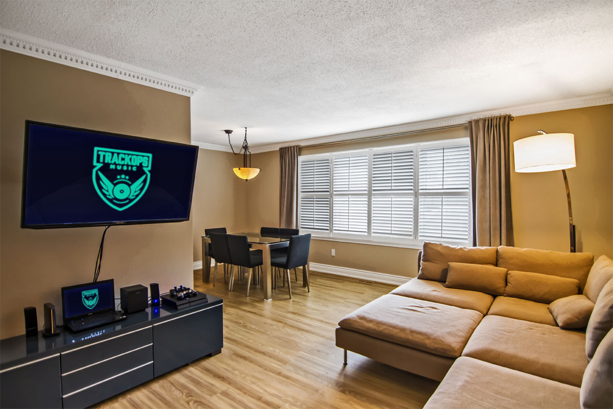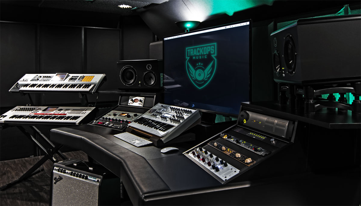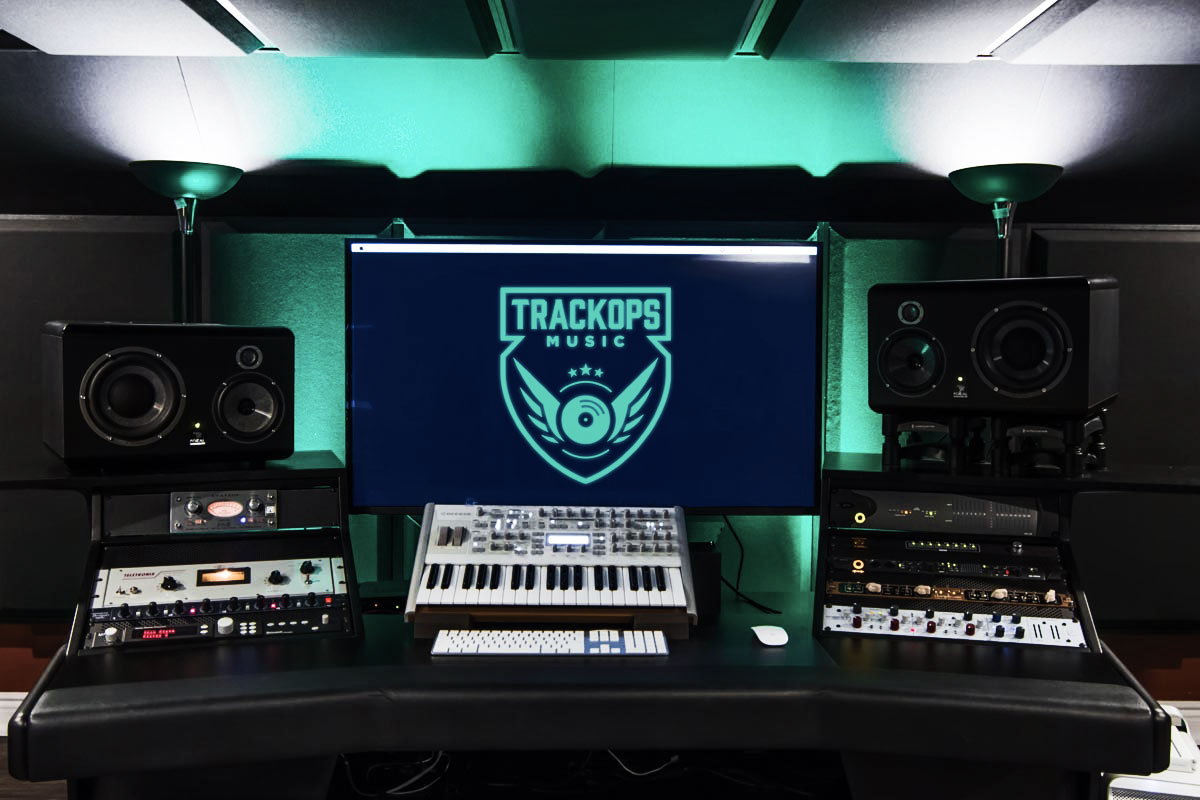 Track Ops Music's main room is specifically designed for recording both vocals and live instruments. On top of our recording capabilities, our main studio features a top quality, sonically tuned room for mixing and mastering in both stereo and 5.1 surround sound plus a full suite of music production hardware and software.