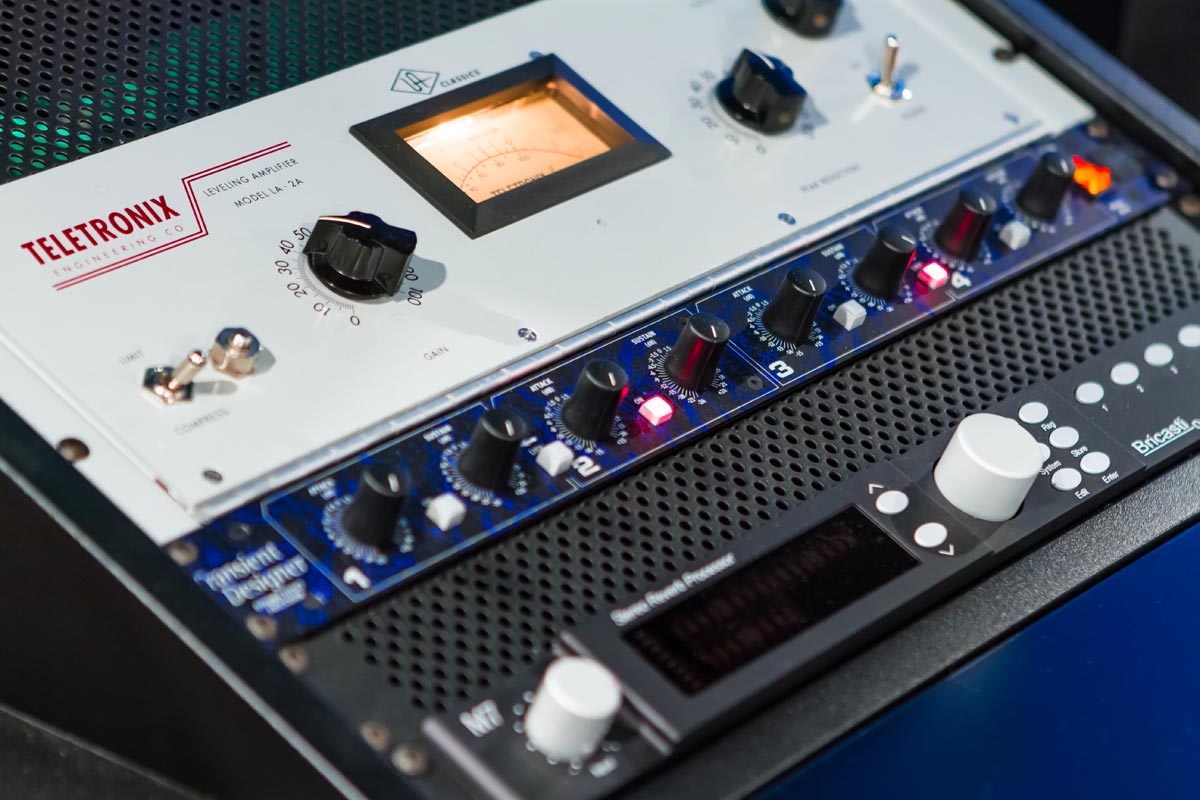 If you don’t need the large room for tracking, Studio B is available. Equipped with an iMac loaded with all the latest plugins and a vocal booth all in one room, Studio B is the perfect place to kick start your next creative project.